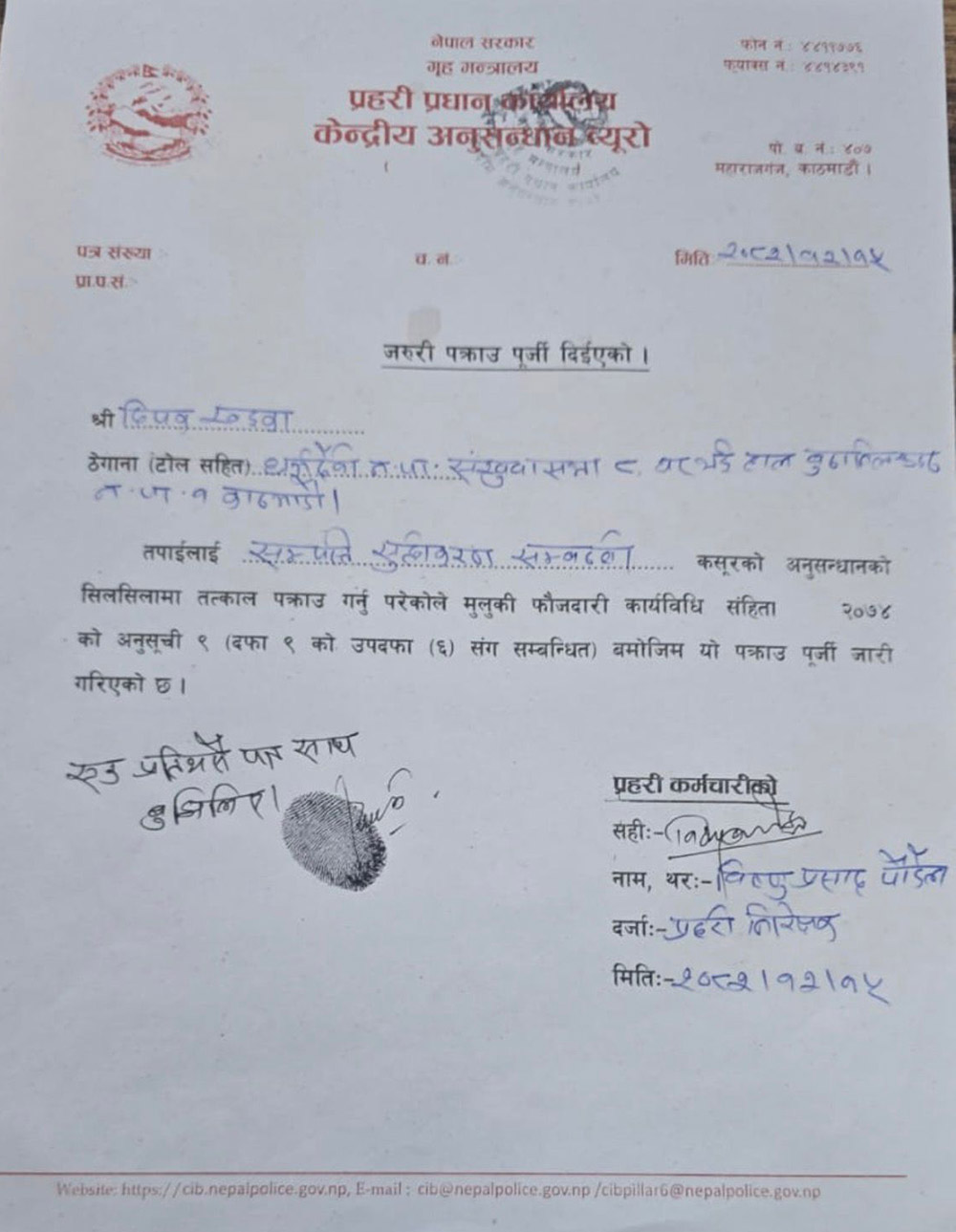 दिपक खड्कालाई दिइएको पक्राउ पुर्जीमा के छ ?